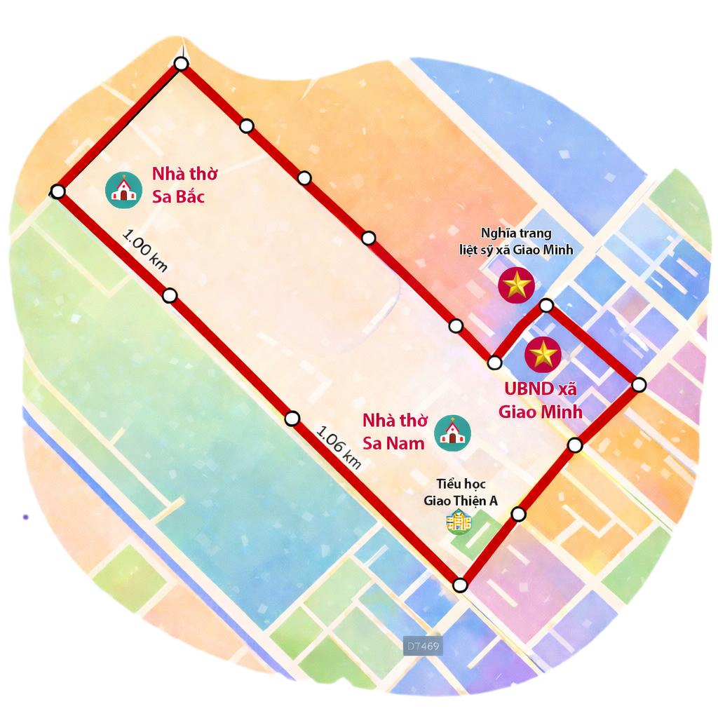 Giải chạy gồm 02 cự ly: 3km và 10km, phù hợp cho mọi đối tượng từ thiếu niên, người dân địa phương đến các vận động viên phong trào trong và ngoài khu vực. Cung đường chạy được thiết kế độc đáo, xuất phát từ Nhà thờ Sa Nam, băng qua những tuyến đường làng yên bình và đặc biệt đi qua Vườn Quốc gia Xuân Thủy, thuộc xã Giao Minh – vùng đất nổi tiếng với cảnh quan thiên nhiên trong lành, hệ sinh thái ngập mặn đặc sắc và vẻ đẹp mộc mạc của miền quê ven biển.